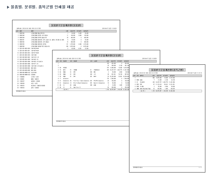 ¹°Ç°ÀÇ ¹°Ç°¸íº°, ¹°Ç°ºÐ·ùº°, ǰ¸ñ±ºº°·Î ÁÖ¹®°ÇµéÀÇ Áý°èÇöȲÀ» È®ÀÎÇÒ ¼ö ÀÖ½À´Ï´Ù.